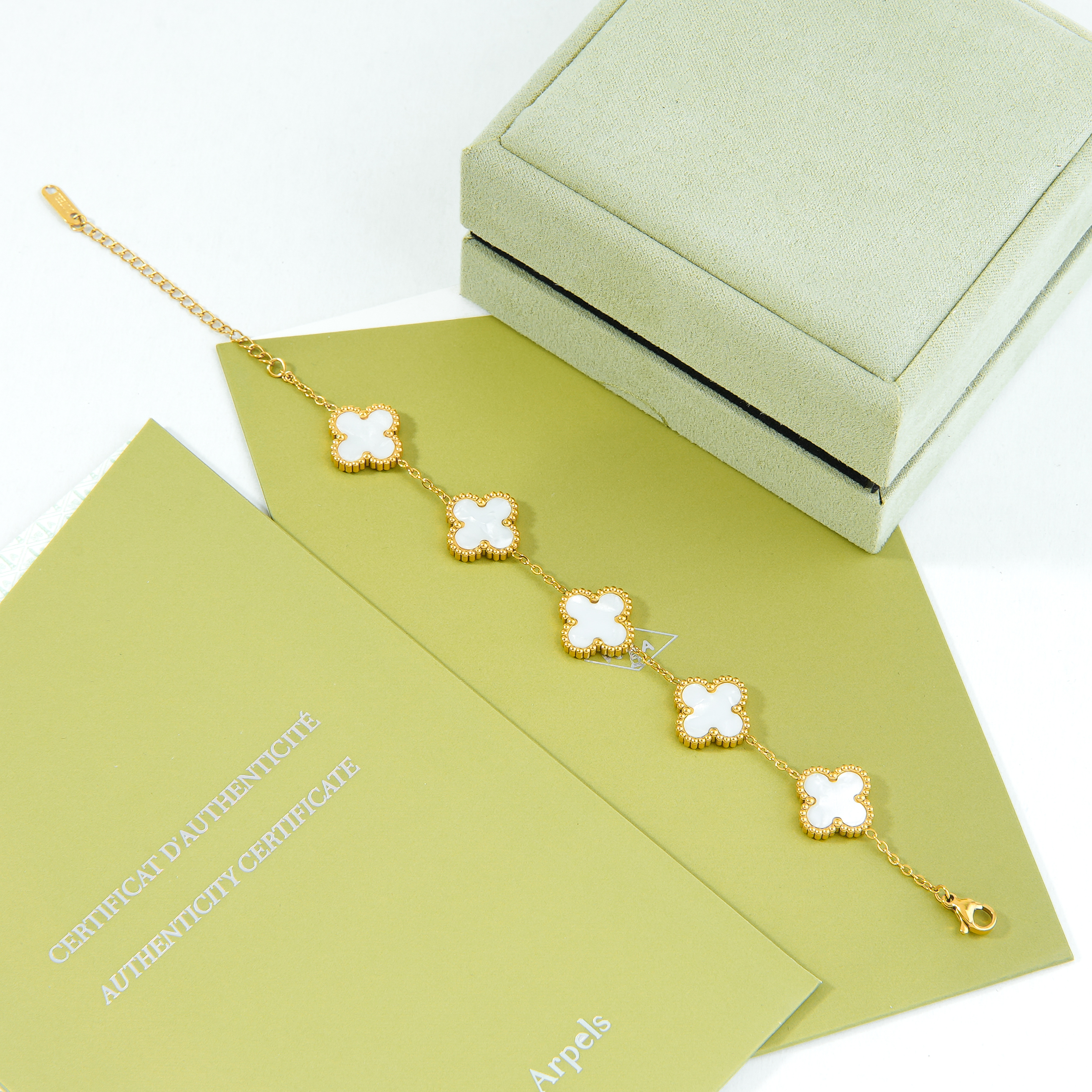 اسوارة فان كليف ابيض ذهبي ستيل