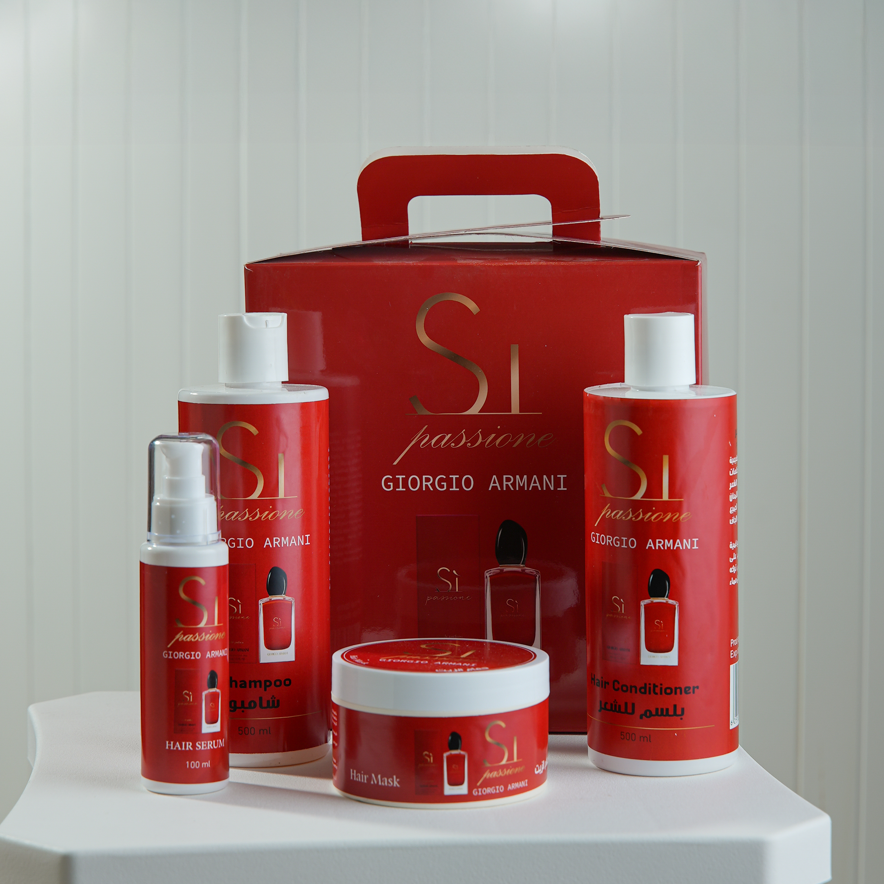 مجموعة منتجات جورجيو أرماني سي باسيون للعناية بالشعر والعطر، وتشمل: