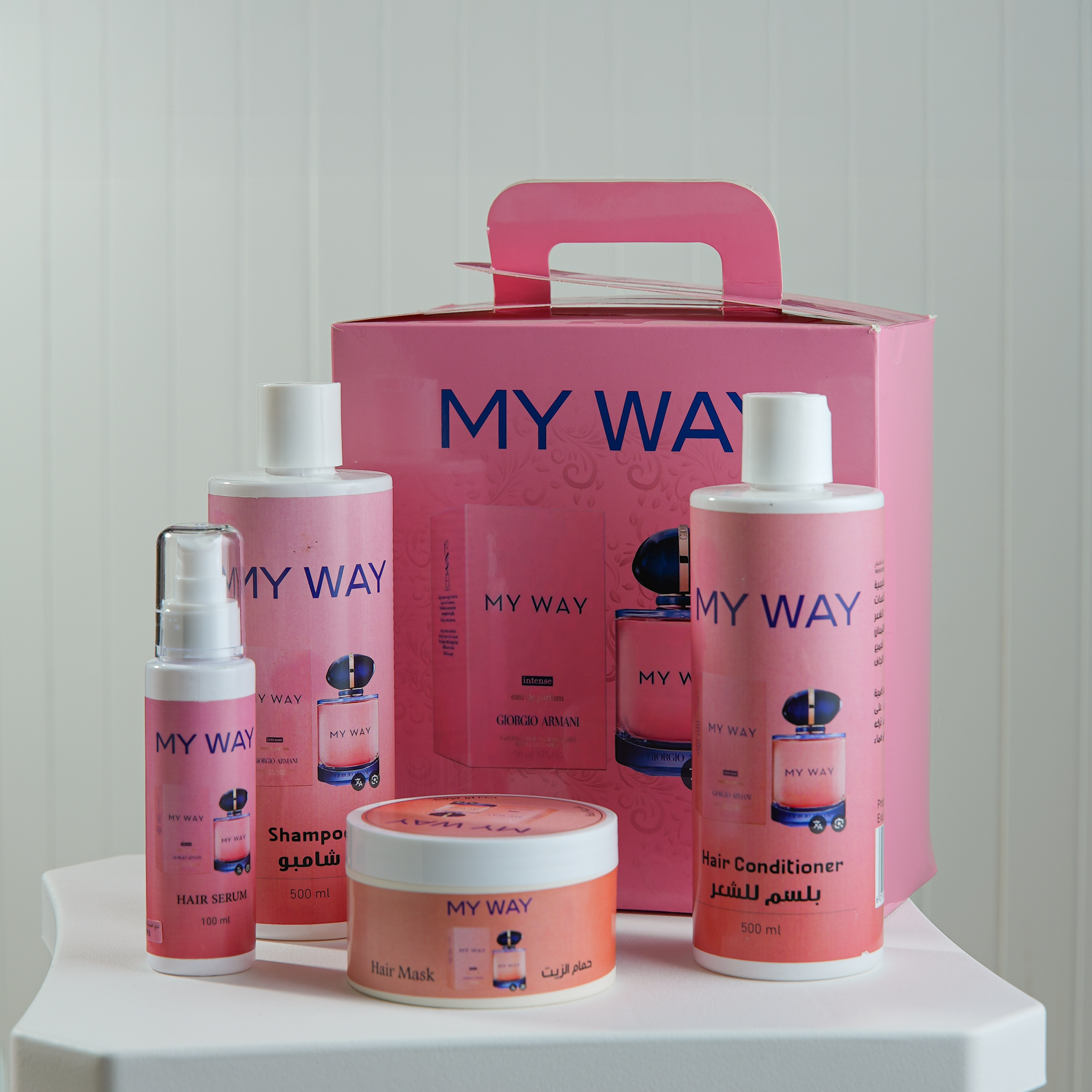 مجموعة منتجات العناية بالشعر من "جورجيو أرماني ماي واي" (Giorgio Armani My Way)، والتي تشمل: