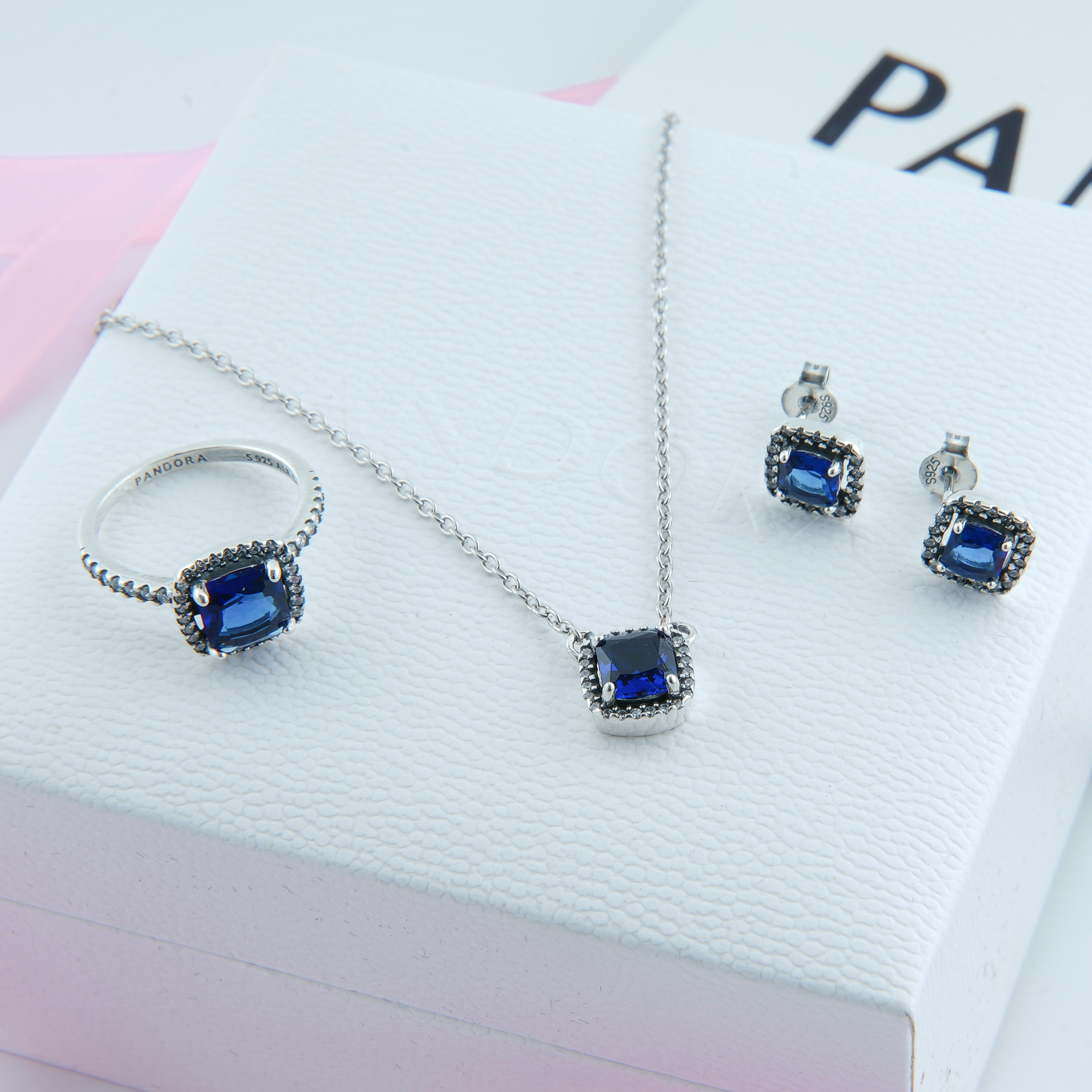 طقم باندورا مربع 3 قطع زركون ازرق
