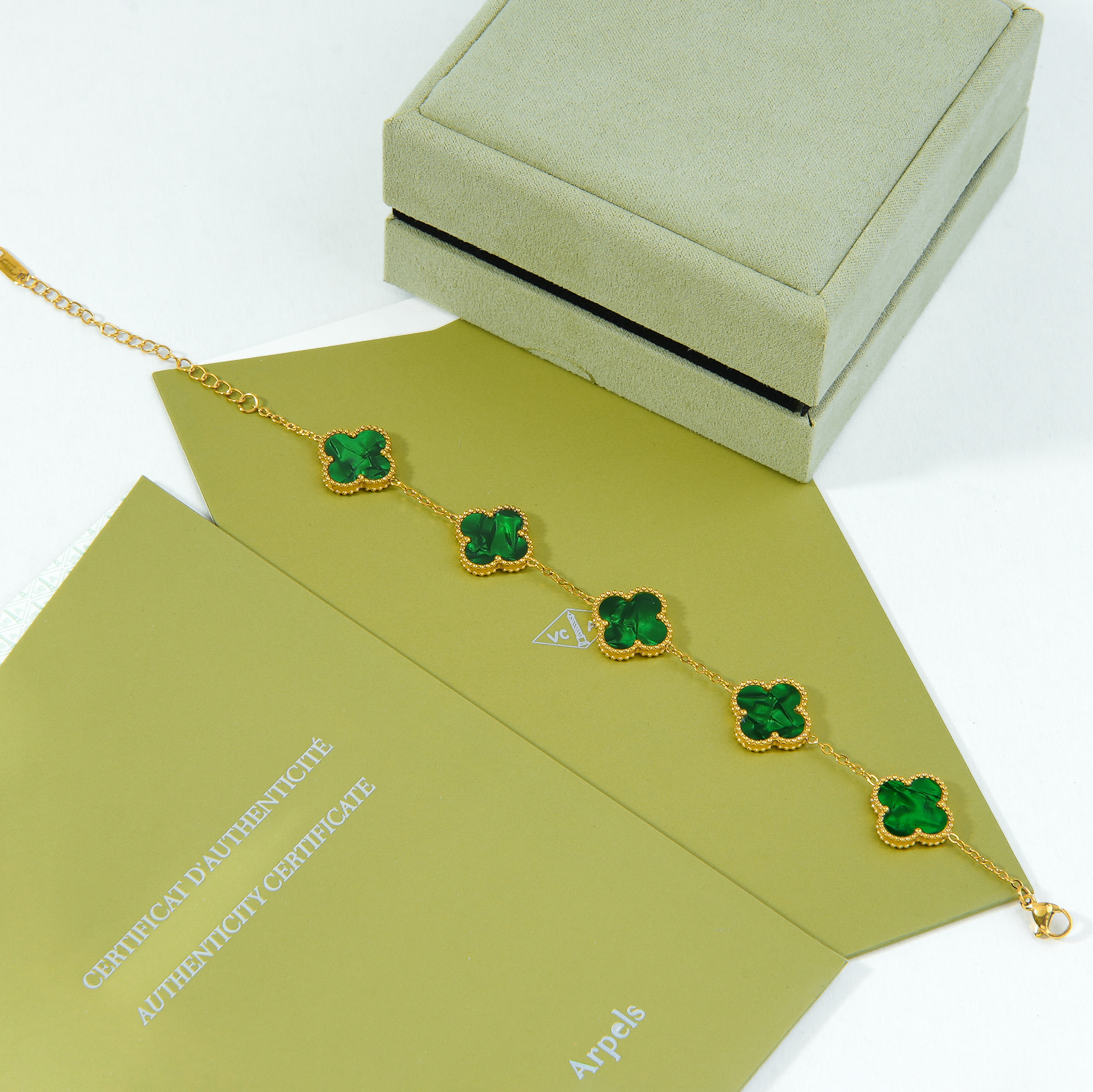 اسوارة فان كليف اخضر مموج ستيل
