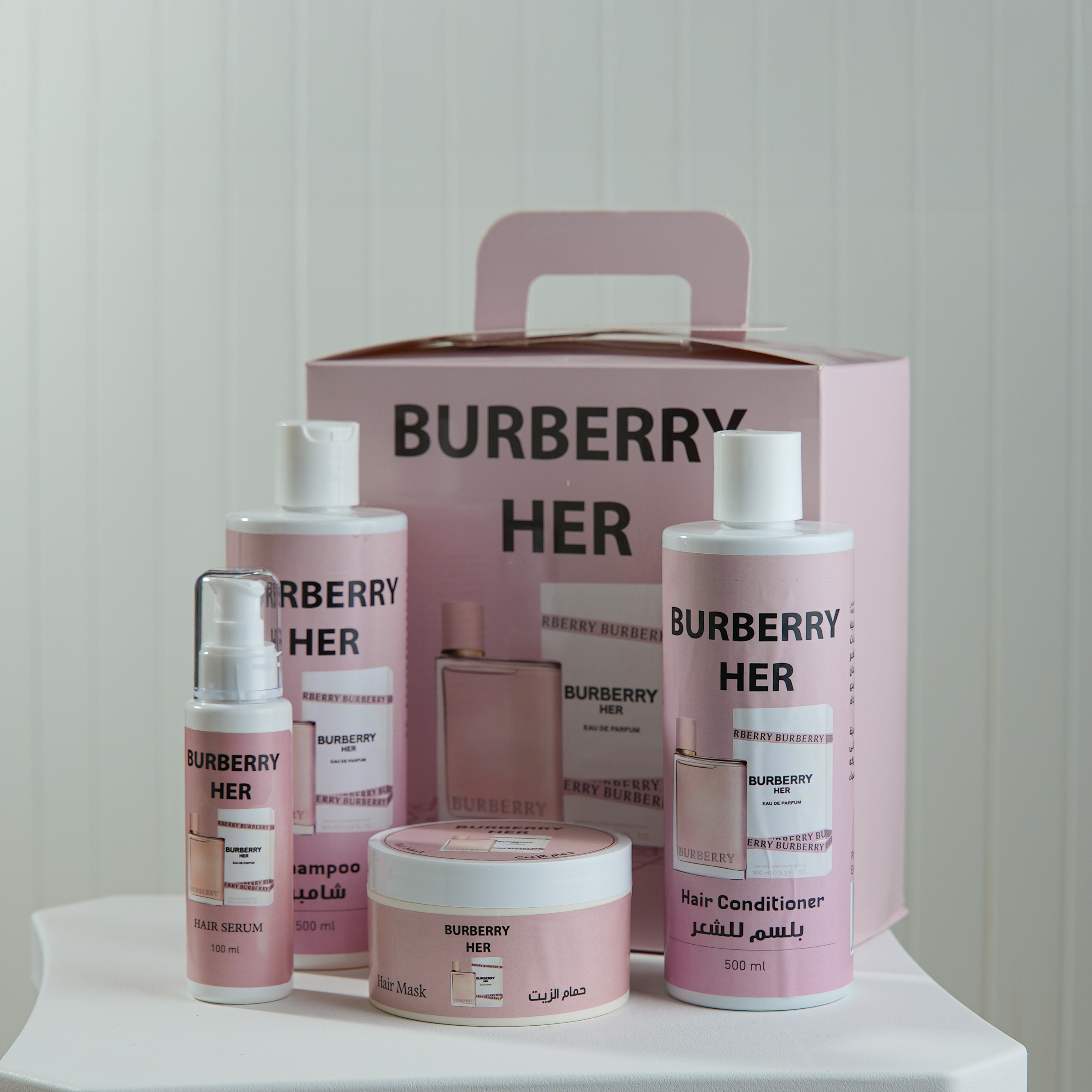 • منتجات العناية بالشعر: تشمل المجموعة سيروم للشعر، شامبو، وماسك للشعر (حمام زيت)، وبلسم للشعر، وكلها تحمل علامة "بربري هير".
