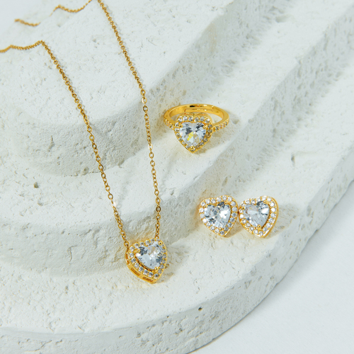 طقم شانيل قطعتين زركون ناعم ذهبي